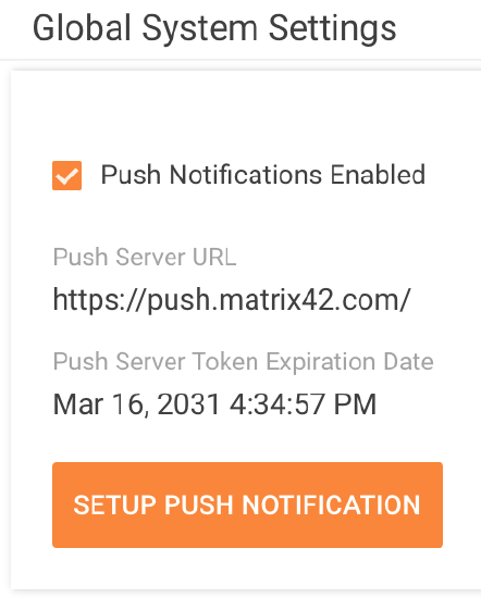 Push Notifications configuration example in the Global System Settings of the Administration application
